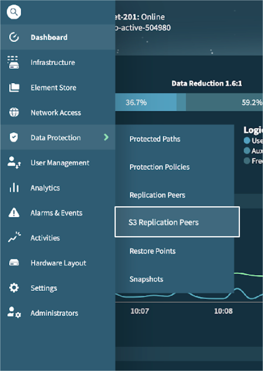 - Navigate to Data Protection > S3 Replication Peers.